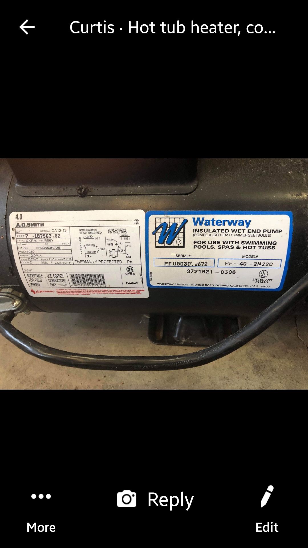 Complete waterway hot tub pump commonly used pump in hot tubs and spa industry it has a 2hp motor 1 8 9 with 4hp wet end.